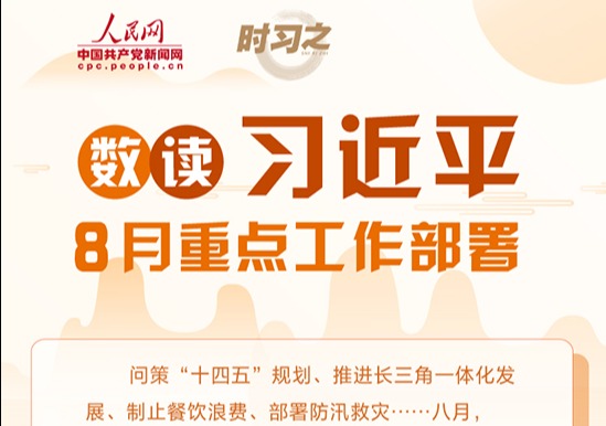 问策“十四五”规划、推进长三角一体化发展、制止餐饮浪费、部署防汛救灾...··.八月,中共中央总书记、国家主席、中央军委主席习近平多次主持召开重要会议,赴地方考察调研,作出多项重要指示等,人民网·中国共产党新闻网“时习之”栏目用一组数字带您回顾总书记的八月重点工作部署。